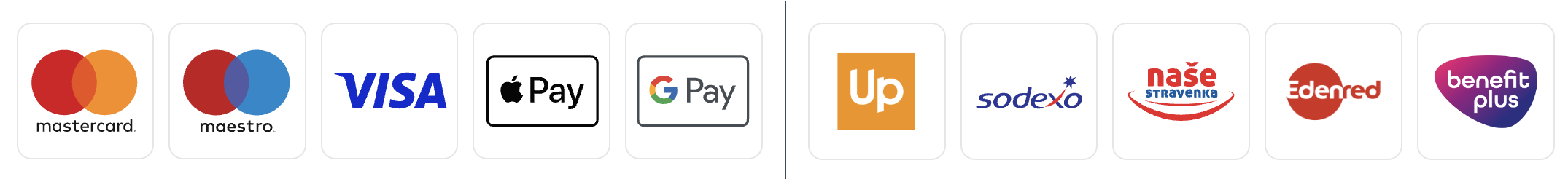 Umožněte zákazníkům platit kartou, bezkontaktně, přes Apple Pay, Google Pay i stravenkami.
